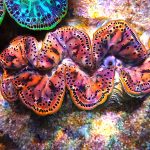 Lovely clam full of colour know as the easier of clams to care for around 4 to 5inch in size!